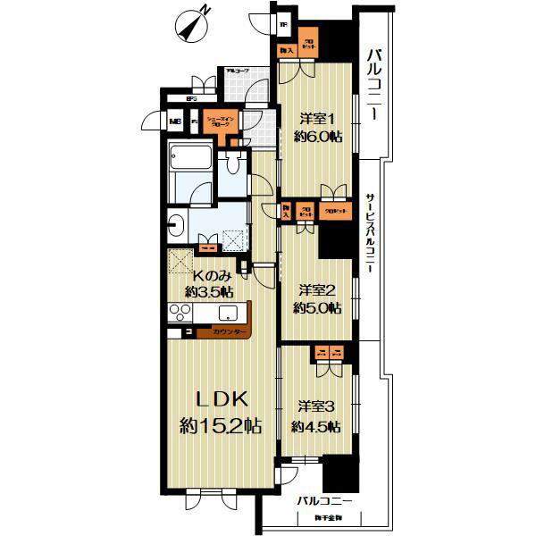 - 2面バルコニー